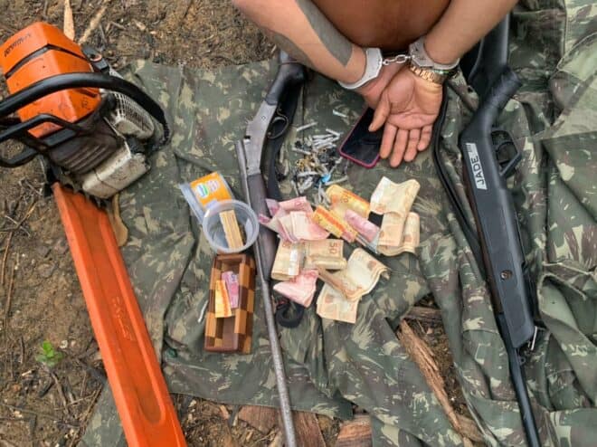 A prisão do foragido se deu em um acampamento no meio da floresta, no Ramal Toco Preto, zona rural do município de Sena Madureira.