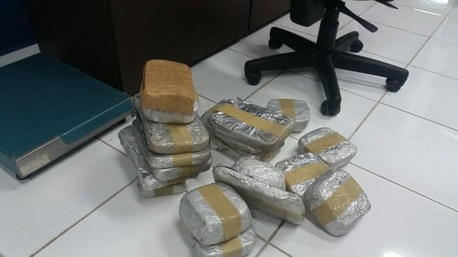 O motivo do nervosismo, ficou evidente quando localizaram uma quantia de ‘tijolos’ debaixo de uma lona. Imediatamente o homem foi algemado afim de evitar uma fuga e foi comprovado que seria cloridrato de cocaína.
