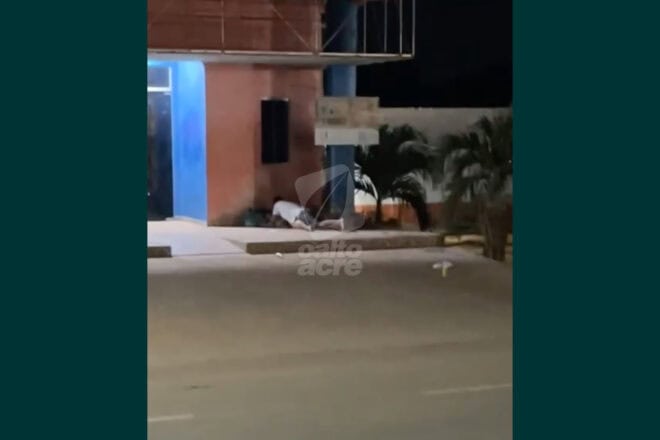 Um casal em situação de vulnerabilidade social foi flagrado mantendo relações sexuais em via pública na noite desta sexta-feira (11), em Brasiléia, na fronteira do Acre. A cena ocorreu na calçada de um prédio comercial na Avenida Manoel Marinho Montes, considerada uma das mais movimentadas da cidade e principal polo comercial do município.