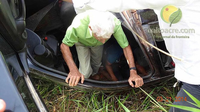 Ao descer, viu que uma mulher identificada como Daniele Pinheiro Daniel (18), tentava sair de dentro do carro. Junto com ela, estava o senhor Valdemiro Alves dos Santos (76) e Deliton Batista Santos (25), que dirigia o carro modelo Chevrolet/Corsa, placa KEF 0971.