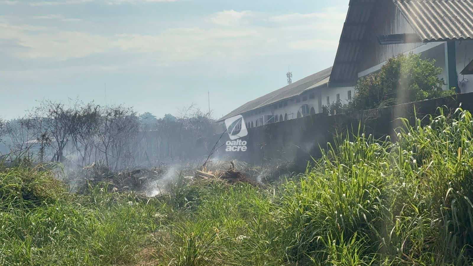 Fumaça de incêndio em terreno baldio causa pânico e evacuação na Escola Marina Vicente Gomes, em Rio Branco