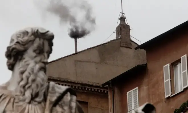 Já era noite no Vaticano, quando o chaminé da Capela Sistina soltou, nesta quarta-feira, 7, a primeira fumaça de cor preta, sinalizando o encerramento da primeira rodada de votações do conclave, sem decisão sobre quem será o próximo papa. O sinal foi acompanhado com expectativa por cerca de 45.000 fiéis que passaram o dia reunidos na Praça São Pedro e arredores, atentos ao momento em que o mundo católico escolhe seu líder.