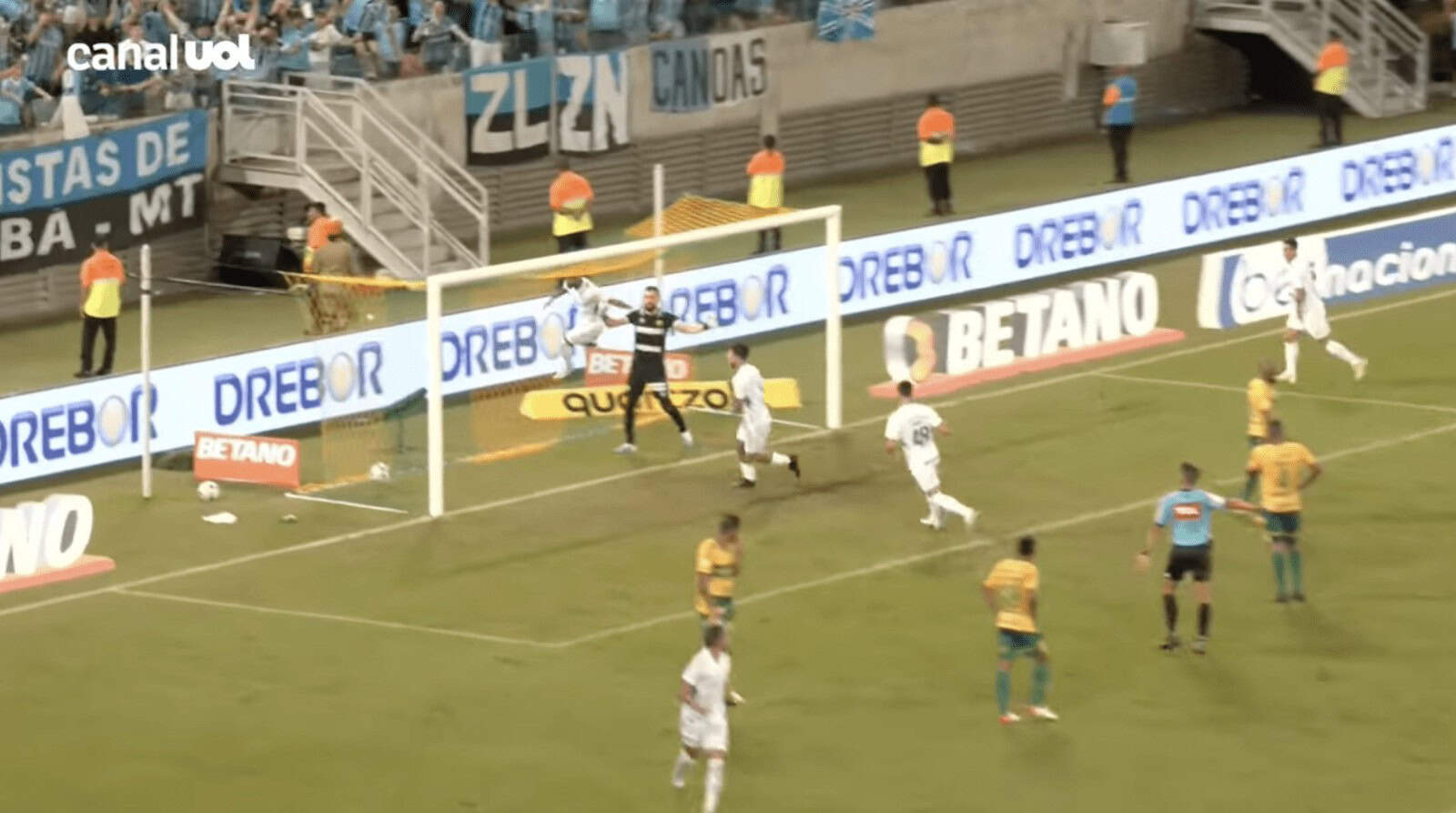 1×2. Zinho saiu rabiscando pelo canto esquerdo do ataque e cruzou para o meio. Nathan finalizou, Walter defendeu e Everton Galdino, que mal tinha entrado em campo, pegou o rebote e empurrou para a rede, dando a vantagem ao Grêmio.