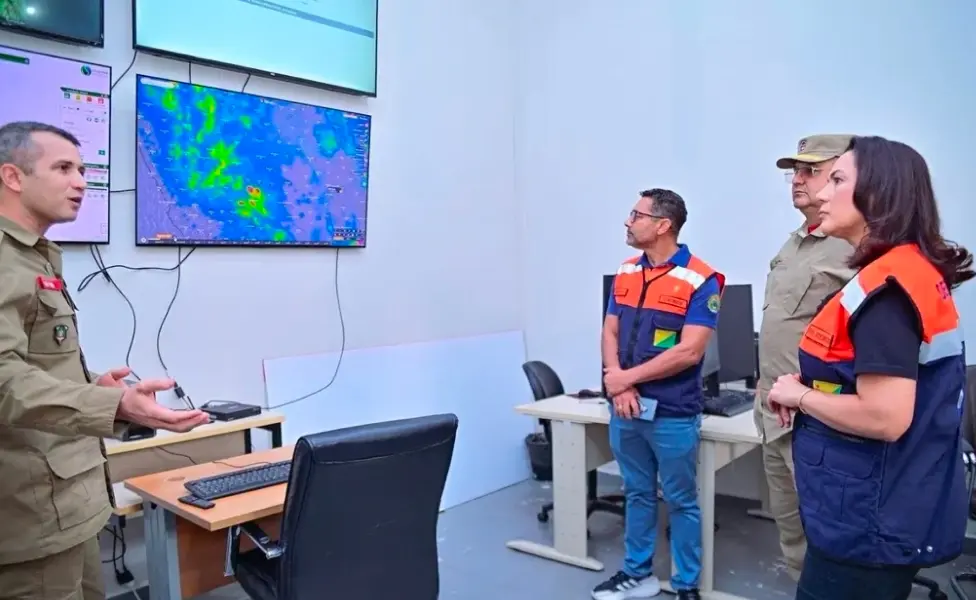 A sala de situação concentra dados atualizados, observações técnicas e o planejamento das ações emergenciais, garantindo resposta rápida em caso de agravamento do cenário.