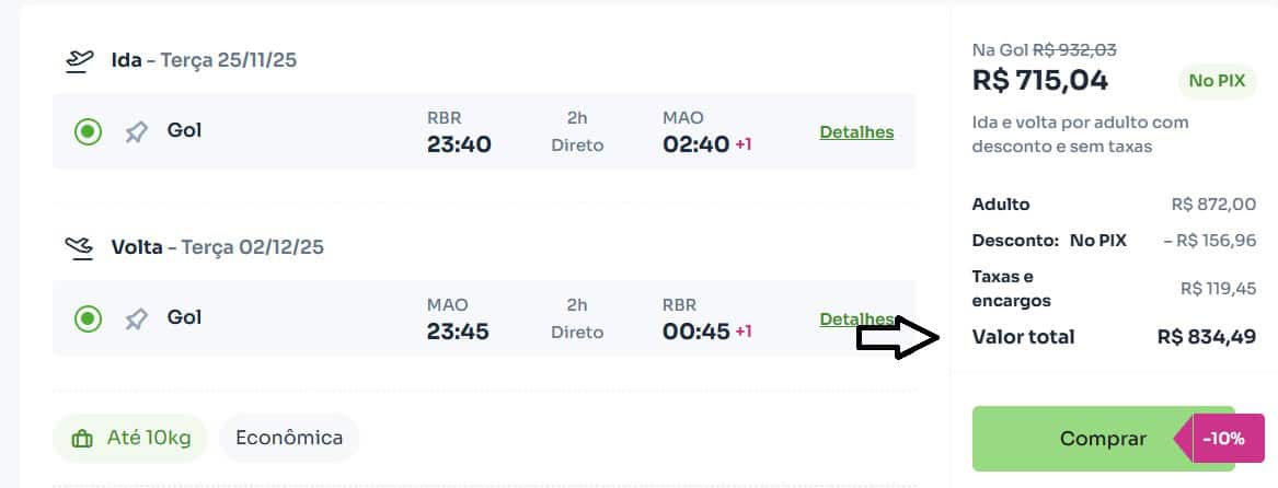 Quem está em Cruzeiro do Sul poderá viajar para Rio Branco pagando pelas passagens aéreas o valor de R$ 812. Outro destaque da Gol é da capital acreana para Manaus: passagens aéreas por R$ 834. (Confira detalhes na imagem abaixo). A Gol oferece voos sem escalas entre as duas cidades capitais às terças e quintas-feiras.