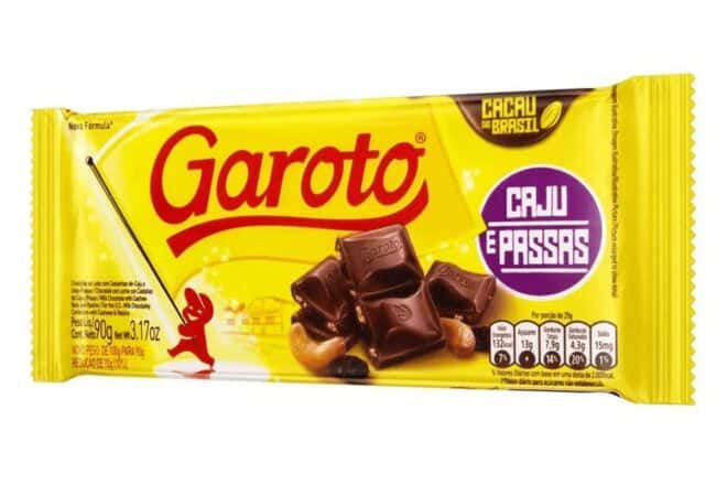 Os lotes em questão são o 225212941G: chocolate ao leite com Castanhas de Caju, marca Garoto, tablete 80g, validade 09/09/2023 e o 225312941G: chocolate ao leite com Castanhas de Caju e Uvas Passas, marca Garoto, tablete 80g, validade 09/09/2023.