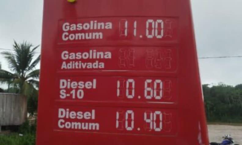 O preço médio da gasolina no Acre era de R$ 7,49 para a versão comum e R$ 7,51 para a aditivada. Isso significa que os consumidores de Marechal Thaumaturgo pagam R$ 3,51 a mais por litro em comparação ao restante do estado