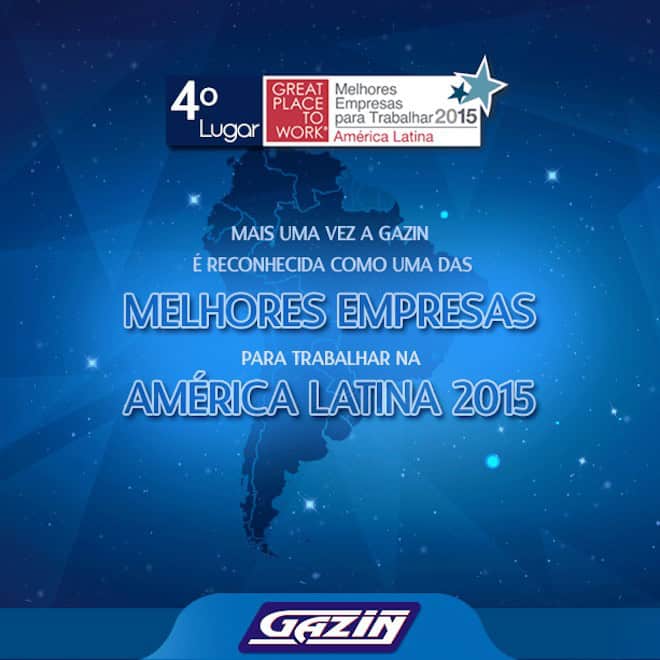 O Grupo Gazin, um gigante no mercado de varejo, recebeu o título de 4ª Melhor Empresa para se trabalhar na América Latina, em um ranking composto por 20 países, 2.294 empresas, sendo 51 empresas brasileiras. Se isolarmos os resultados apenas para o seu segmento, a empresa ocupa o topo. A cerimônia de premiação aconteceu no dia 07 de maio em São Paulo.