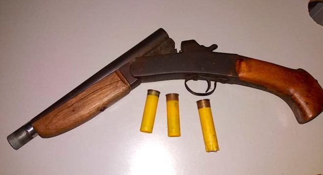 Foi quando perceberam que haviam algo estranho próximo a uma casa vizinha. Foi quando localizaram uma escopeta calibre 16 com munições e foi apreendida. Esta havia sido escondida momento antes da chegada dos policiais e realizaram a apreensão dos suspeitos junto com as drogas.