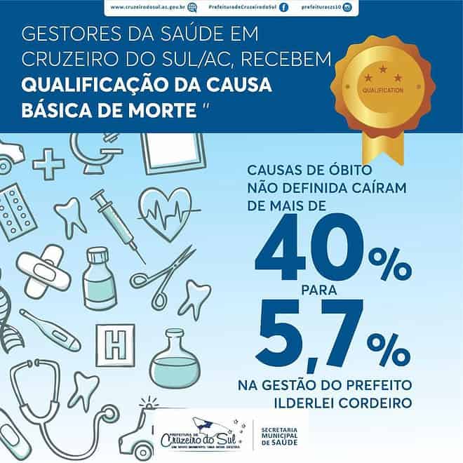 Participando do projeto desde 2017, Cruzeiro do Sul tem o melhor resultado da Região Norte da Qualificação da Causa Básica de Morte (garbege). A capacitação visa melhorar a investigação da causa óbito.