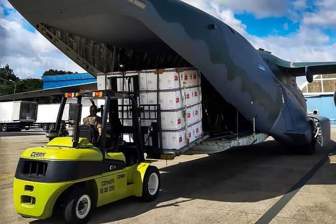 KC-390 Millennium da FAB é carregado com carga das vacinas para o combate à Covid-19. – Divulgação/Ministério da Defesa/arquivo