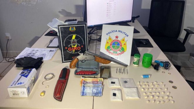 Militares do Grupo de intervenção rápida e ostensiva (Giro), apreenderam uma arma de fogo, entorpecentes e quantia em dinheiro na terça-feira, 22, no bairro Boa Vista, região da baixada.