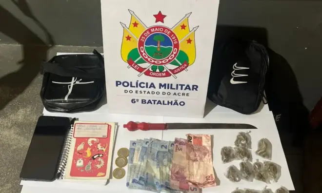 Com o suspeito, os militares encontraram uma mochila contendo 82 trouxinhas de substâncias análogas à cocaína, merla e skunk, além de R$ 32,00 em espécie, uma caderneta com anotações do tráfico e um punhal. Durante a fuga, os outros dois indivíduos abandonaram mochilas com mais porções de drogas, também recolhidas pela equipe policial.