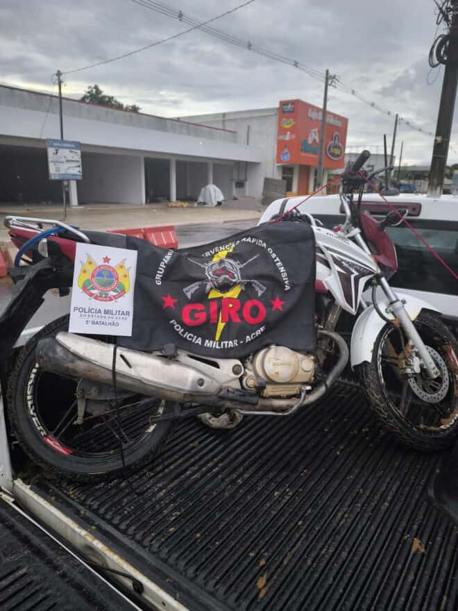 A Polícia Militar do Acre, por meio do grupamento GIRO do 5º Batalhão de Polícia Militar (BPM), recuperou uma motocicleta que havia sido furtada nas proximidades da Escola KJK, em Brasiléia. A ação ocorreu na noite de domingo para segunda-feira, resultado de um trabalho intensivo de levantamento de informações e do uso de um rastreador instalado no veículo.