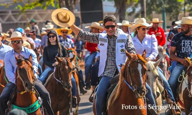 Após dois anos sem a realização da maior feira agropecuária do Estado devido a pandemia mundial do Covid-19, a tradicional cavalgada que saiu da Gameleira, no Segundo Distrito de Rio Branco, e seguiu até o Parque de Exposições Wildy Viana, neste sábado, 30, teve início por volta das 9 horas da manhã, com o governador Gladson Cameli (Progressistas) puxando as comitivas para realizar a abertura oficial dos nove dias de exposição. A largada ocorreu após as bênçãos da pastora Noêmia e do padre Manoel.