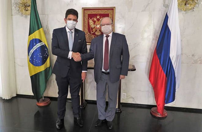 Uma parceria que poderá render frutos para o desenvolvimento do Acre teve início nesta segunda-feira, 24, durante encontro do governador Gladson Cameli com o embaixador da Rússia, Sergey Akopov, na sede da embaixada, em Brasília. Gladson Cameli, acompanhado do representante do Acre em Brasília, Ricardo França, pediu inicialmente o apoio da Federação Russa para o controle do coronavírus através da produção de vacinas e solicitou um intercâmbio com empresas russas para futuros investimentos no Estado do Acre.
