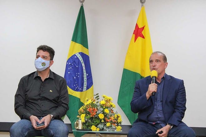 O governador Gladson Cameli e o ministro da Cidadania, Onyx Lorenzoni, reuniram-se na manhã desta segunda-feira, em Rio Branco, para anunciar mais de R$ 15 milhões em investimentos para o Acre. Ao todo, são R$ 5 milhões para o Programa de Aquisição de Alimentos (PAA) e R$ 10 milhões para destinar água potável a todas as escolas do estado que ainda não possuem acesso definitivo ao recurso.