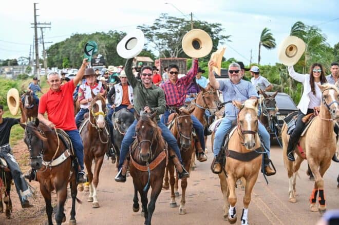 Montado a cavalo, o governador desfilou pelas principais ruas da cidade, cumprimentou populares e destacou a importância cultural e econômica do evento. “O lazer é um direito garantido pela nossa Constituição, e eventos como este movimentam a economia da regional. Estamos celebrando com alegria e união”, declarou Cameli.