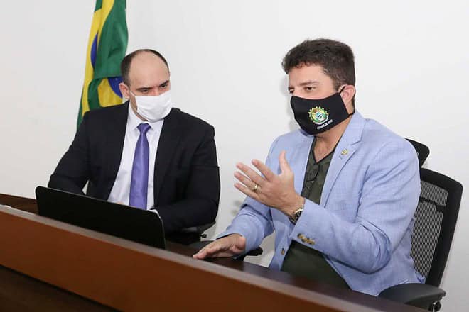 Governador e o juiz Giordane Dourado alinharam processos de trabalho para sucesso das eleições Foto: Marcos Vicentti/Secom