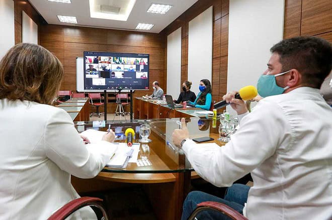 Reunião virtual entre governador do Estado e prefeitos debateu a pandemia de Covid-19 e os impactos na receita e arrecadação do Estado Foto: Marcos Vicentti/Secom.