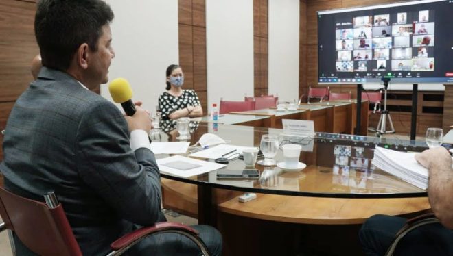 Reunião com o governador teve a presença de secretários e chefes de autarquias. Foto: Odair Leal/Secom