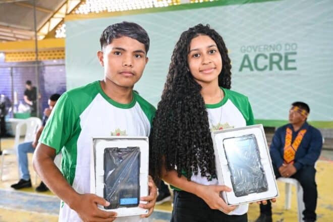 “Estou muito feliz por ter recebido esse tablet para auxiliar nos meus estudos. Ele será muito útil, principalmente nesse momento em que a lei não permite mais que a gente use celular na escola. Assim teremos como fazer as nossas pesquisas sem nenhuma dificuldade”, destacou Cibelly, que estuda na Escola Jairo Figueiredo, em Jordão.