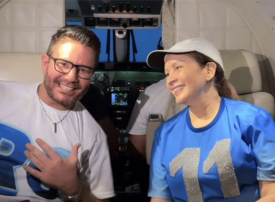 O governador e a deputada postaram um vídeo nas redes sociais, dentro de um avião, indo de uma cidade para a outra