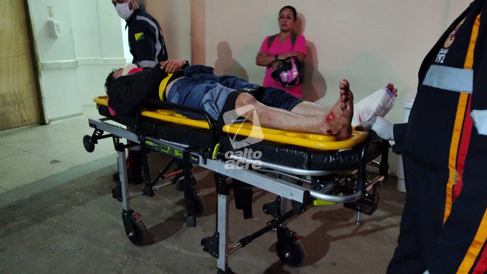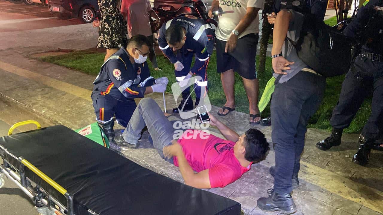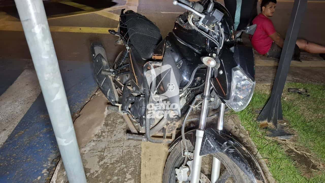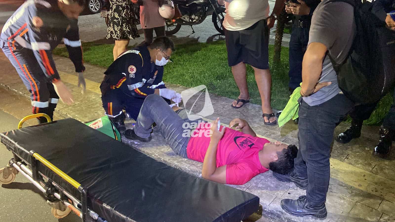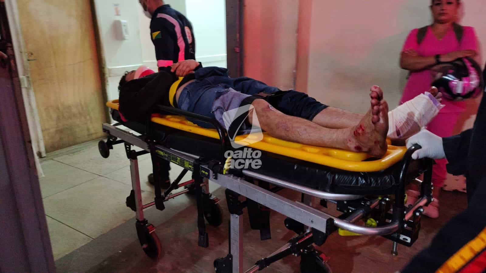 O motociclista Marcos Santana, de 21 anos, ficou gravemente ferido após um acidente de trânsito registrado na noite desta quarta-feira (17), na rua Rio de Janeiro, bairro Ivete Vargas, em Rio Branco.