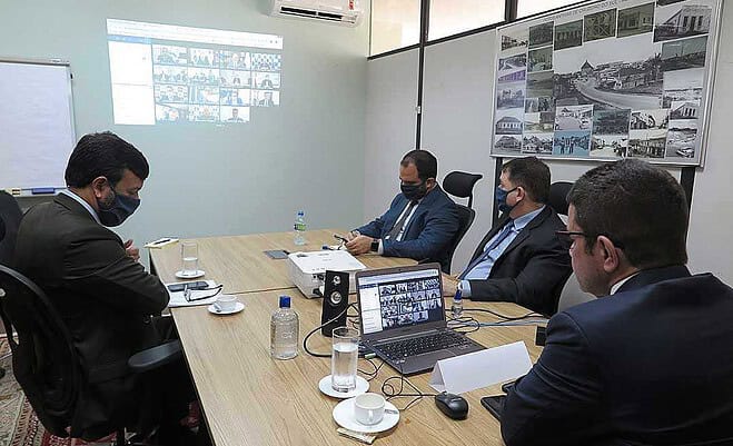 O governador Gladson Cameli participou na manhã desta quinta-feira, 21, de videoconferência com o presidente da República Jair Bolsonaro. A conferência, que contou com a participação de todos os governadores, foi solicitada por Bolsonaro para definir as estratégias e os principais pontos para o auxílio do governo federal aos estados.