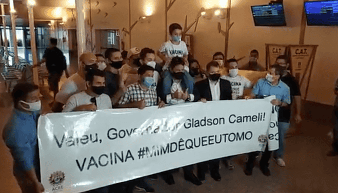 Após atraso no voo que trazia o governador Gladson Cameli, o mandatário maior do Acre concedeu uma coletiva aos jornalistas no aeroporto para avisar da chegada das vacinas de imunização contra o covid-19 no Estado.