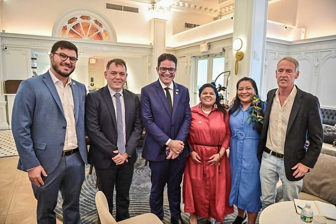 Em mais uma reunião de trabalho durante a 5ª edição da Semana do Clima 2023 (Climate Week), em Nova York, o governador Gladson Cameli esteve reunido na manhã desta terça-feira, 19, com a ministra dos Povos Indígenas, Sônia Guajajara. Em pauta, as ações da gestão estadual de apoio e desenvolvimento dos povos originários do Acre.