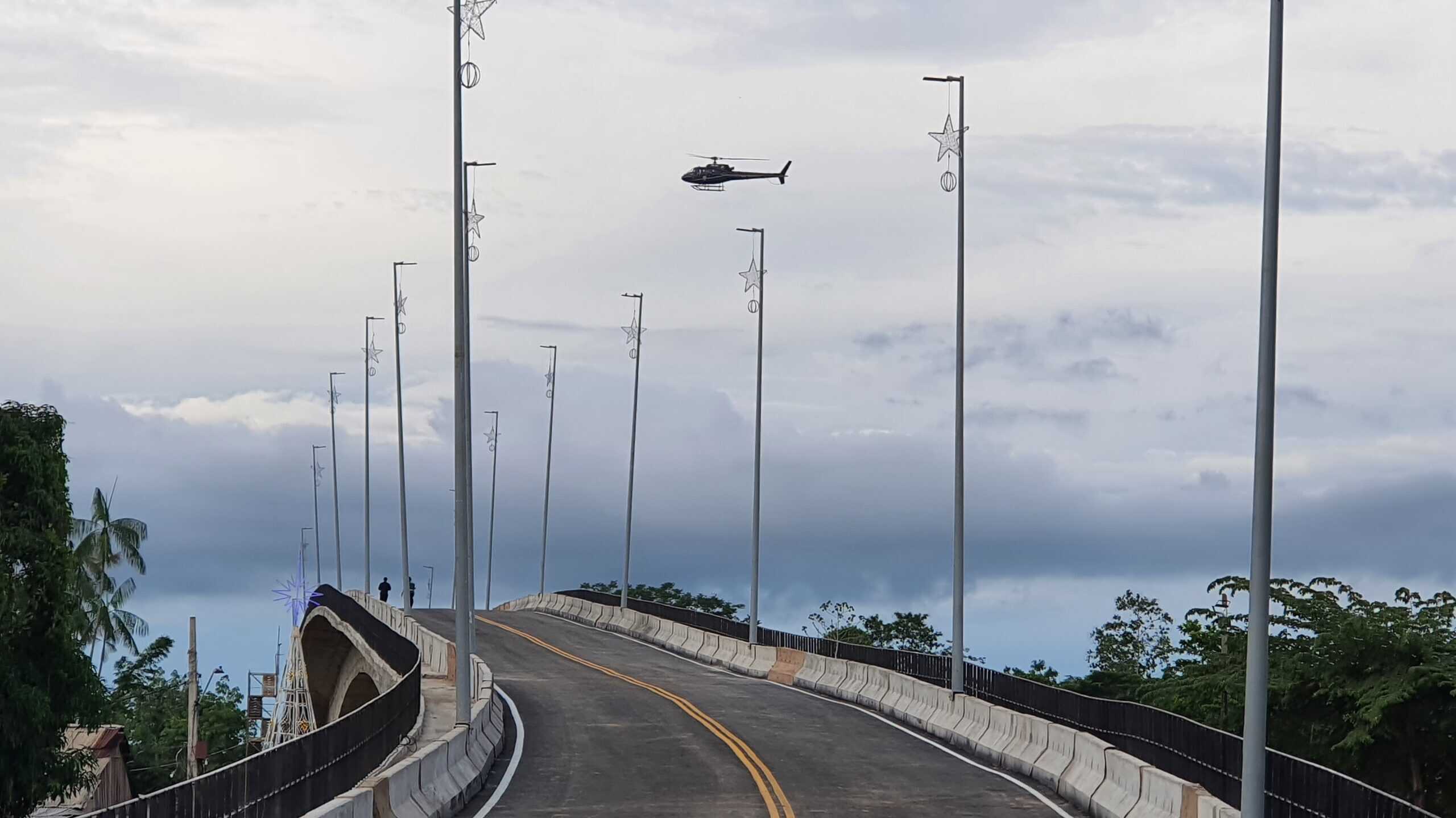 O governador do Acre, Gladson Cameli, desembarcou de helicóptero em Xapuri na companhia do filho, Guilherme, para participar da inauguração da ponte da Sibéria, obra considerada estratégica para a mobilidade urbana do município. Ele foi recebido pela presidente do Deracre, Sula Miranda, que coordenou a execução do projeto.
