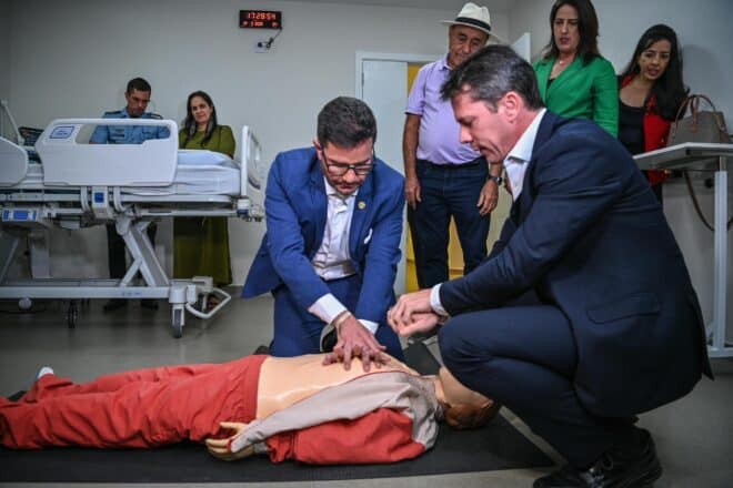 Durante a visita do governador Gladson o mesmo participou de uma aula de massagem cardíaca, um procedimento que pode salvar muitas vidas. Essa demonstração faz parte de uma campanha da clínica, chamada “Aperta o Peito”.