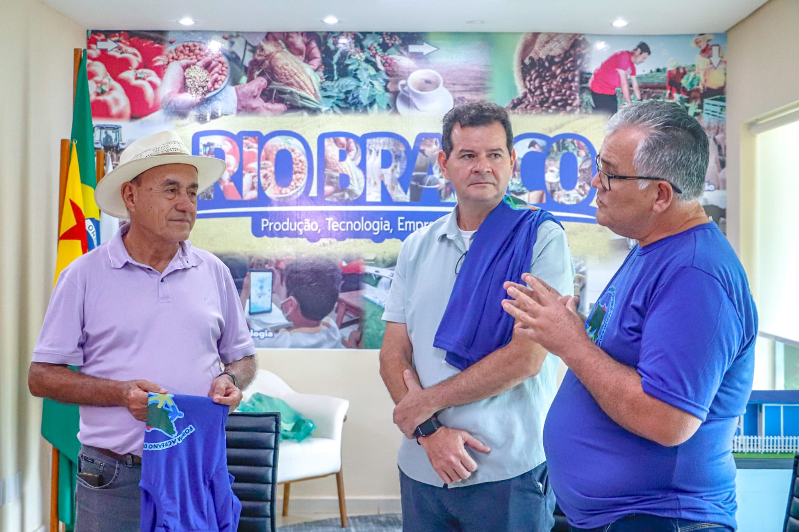 O prefeito Tião Bocalom recebeu em seu gabinete, nesta sexta-feira (30), uma comissão composta pelo coordenador da Economia Solidária, Carlos Taborga, que veio expressar sua gratidão à gestão municipal pelo apoio constante às iniciativas da economia solidária desenvolvidas em Rio Branco.