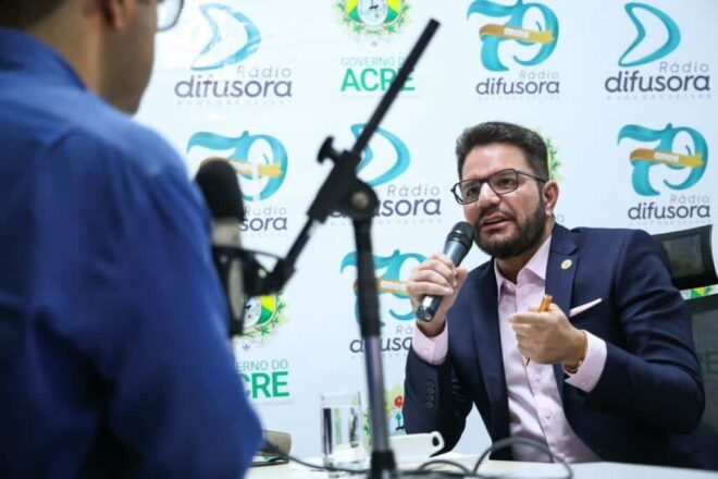 O governador Gladson Cameli concedeu uma entrevista à Rádio Difusora Acreana na manhã desta terça-feira, 21, transmitida em cadeia para todo o Acre, por meio do Sistema Público de Comunicação. O programa Gente em Debate, apresentado por Jefson Dourado, foi o palco para o governador abordar temas cruciais para o estado.