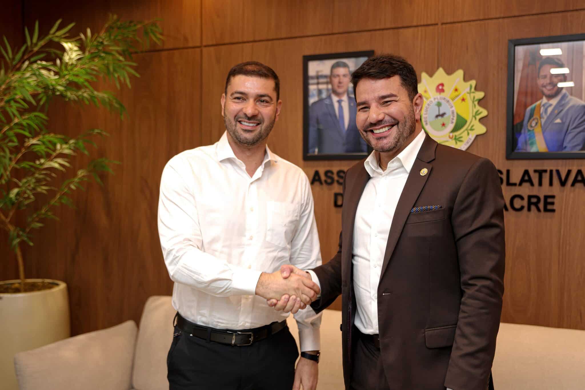 Simbolizando a cooperação entre Poder Executivo e o Legislativo estadual, na manhã desta segunda-feira, 29, o governador Gladson Camelí realizou uma visita institucional ao gabinete do presidente da Assembleia Legislativa do Estado do Acre (Aleac), deputado Nicolau Júnior. O encontro teve caráter de agradecimento mútuo entre as instituições.