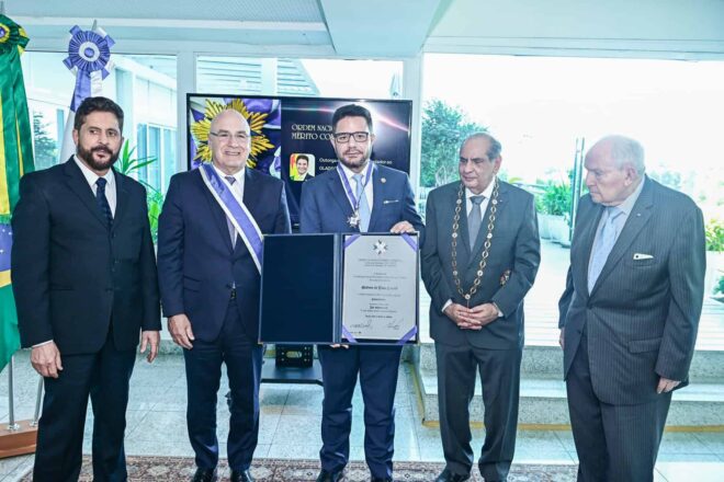 O governador Gladson Cameli foi o grande homenageado nesta terça-feira, 7, na sede da Confederação Nacional do Comércio de Bens, Serviços e Turismo (CNC), no Rio de Janeiro, com a Ordem Nacional de Mérito Comercial, no grau Comendador, que é conferida a personalidades e instituições, nacionais ou estrangeiras, que se tenham tornado dignas da gratidão e de reconhecimento.