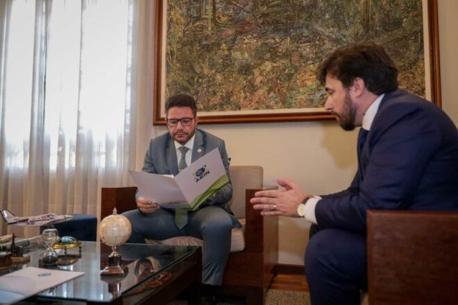 O governador Gladson Cameli recebeu na tarde desta quinta-feira, 9, no Palácio Rio Branco, o superintendente da Agência Brasileira de Inteligência (Abin) no Acre, Éder Manfrin. Durante o encontro, foi feito um convite para um evento sobre fluxos migratórios na região Norte, promovido pelo Sistema Brasileiro de Inteligência .