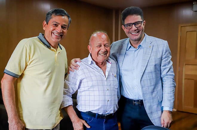 Lívio Veras, Antônio Aquino e o governador Gladson Cameli. Foto: Neto Lucena/Secom
