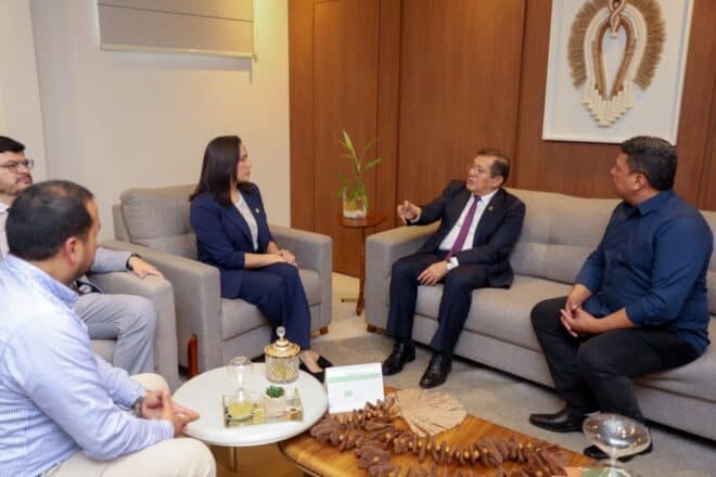 A governadora em exercício, Mailza Assis, recebeu em seu gabinete, nesta quarta-feira, 25, o deputado peruano Eduardo Salhuana Cavides, representante do departamento de Madre de Díos. Durante o encontro, as autoridades discutiram estratégias para fortalecer a integração entre Brasil e Peru e ampliar as exportações, com foco no uso da Rodovia Interoceânica como corredor logístico entre o Atlântico e o Pacífico.