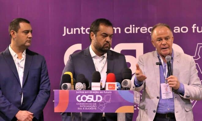 “Temos agora o desafio de tornar o Cosud [Consórcio de Integração Sul e Sudeste] algo regulamentado. Estamos pensando em uma estrutura física que faça com que esses trabalhos avancem. Vários estados já têm experiências de compras em conjunto. Na época da vacina, a gente partilhou muito fornecedores de insumos e a questão logística”, recordou.