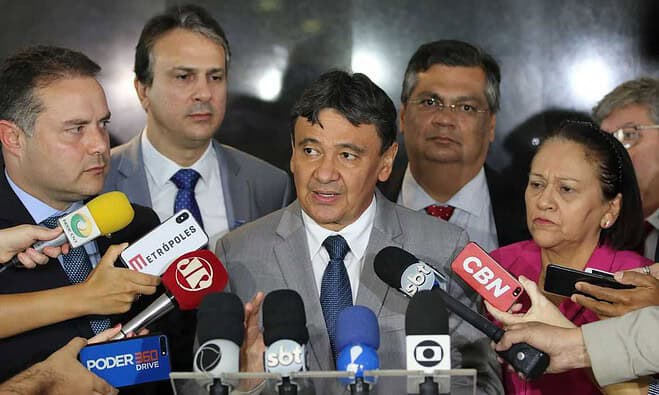 Governadores do Nordeste falam à imprensa após reunião com o presidente Jair Bolsonaro e com o ministro da Economia, Paulo Guedes. Na foto, fala o governador do Piauí, Wellington Dias.