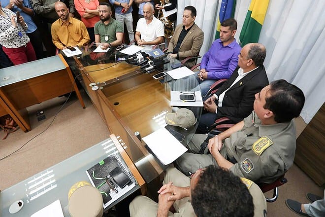 A entrevista coletiva foi acompanhada pelo delegado-geral da polícia Civil, Henrique Maciel; pelo comandante-geral do Corpo de Bombeiros, coronel Carlos Batista; pelo subcomandante da polícia Militar, coronel Luciano Dias; e pelo diretor-presidente do Instituto de Administração Penitenciária (Iapen), Lucas Gomes.