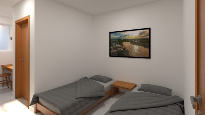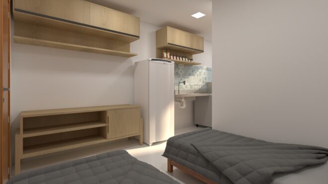 A proposta do equipamento é atender pacientes e acompanhantes que permanecem na capital por conta de tratamentos prolongados, oferecendo condições mínimas de conforto e suporte durante esse período. No térreo, estão concentradas as áreas administrativas e de convivência, enquanto o andar superior abriga os quartos destinados aos usuários.