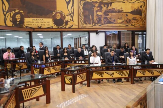 O programa tem a duração de quatro meses e, além da posse e diplomação, os alunos que fazem parte da vivência parlamentar até esta sexta-feira, 27, assistem a palestras e oficinas de consultoria técnica, elaboração de projetos e ética parlamentar, além de participar de um tour guiado pelo Museu da Borracha, Museu dos Povos Acreanos e Memorial dos Autonomistas.