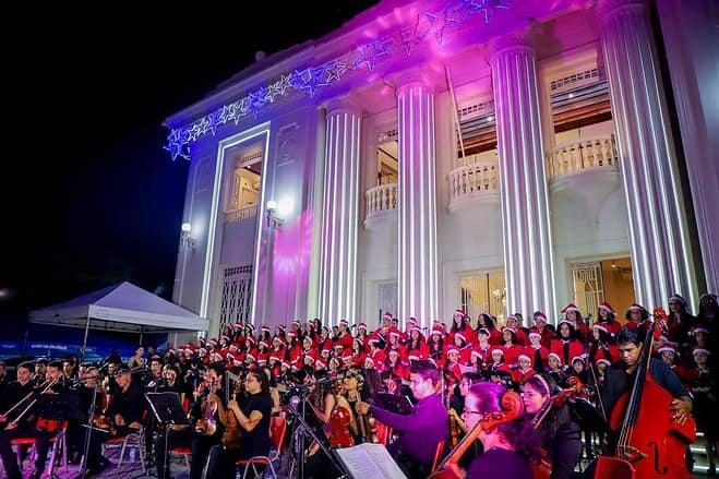 Música, luzes e espírito natalino marcaram a abertura oficial da programação do Natal 2023 do governo do Acre na noite desta sexta-feira, 1º, na esplanada do Palácio Rio Branco.