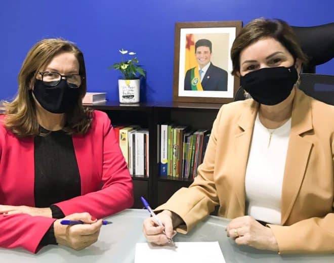 No Acre, a secretária Socorro Neri assinou a adesão ao programa juntamente com a chefe do Departamento de Planejamento, Convênios e Políticas Educacionais, professora Mara Lima.