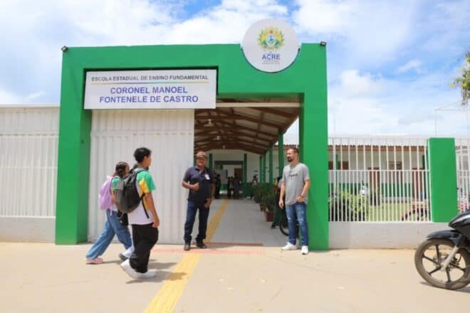 A presença do Estado no chão da escola se materializa em entregas que transformam a rotina de quem ensina e de quem aprende. Em Brasileia, a Escola Estadual Cel. Fontenele de Castro vive um novo capítulo de sua história. A unidade passou por um processo de reforma, que incluiu a adaptação de espaços, e agora avança para a fase final de execução de sua quadra poliesportiva — um pleito histórico da comunidade local.