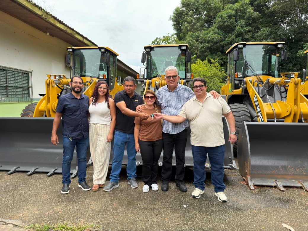 O prefeito de Brasiléia, Carlinhos do Pelado, recebe uma pá carregadeira destinada ao município por meio do Ministério da Agricultura e Pecuária. O equipamento foi viabilizado com articulação do senador Sérgio Petecão e tem como objetivo fortalecer os serviços urbanos e apoiar o desenvolvimento da região.
