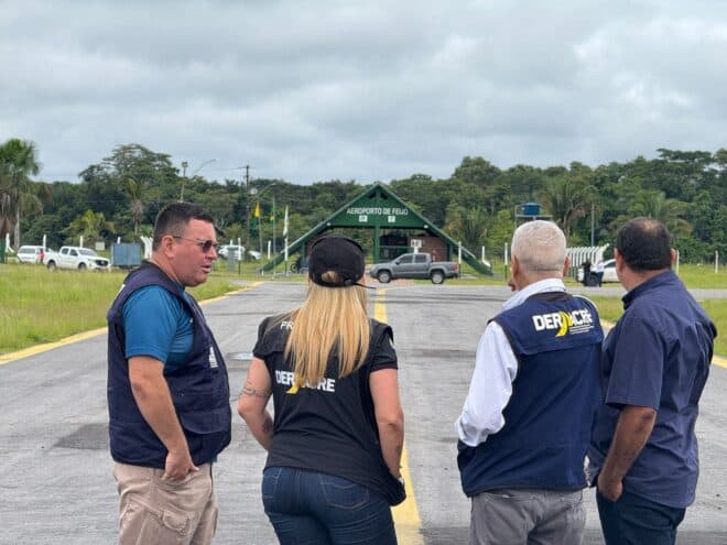 Outro ponto discutido na reunião foi a programação de manutenção de ramais para o período do verão, visando garantir a trafegabilidade e a segurança nas estradas rurais. A presidente do Deracre também realizou uma vistoria preliminar no aeródromo de Feijó, acompanhada do diretor de Portos e Aeroportos, Sócrates Guimarães. Ela explicou que o órgão fará as intervenções necessárias na pista de pouso e na sede do aeródromo, atendendo às exigências da Agência Nacional de Aviação Civil (Anac) para garantir a segurança operacional.